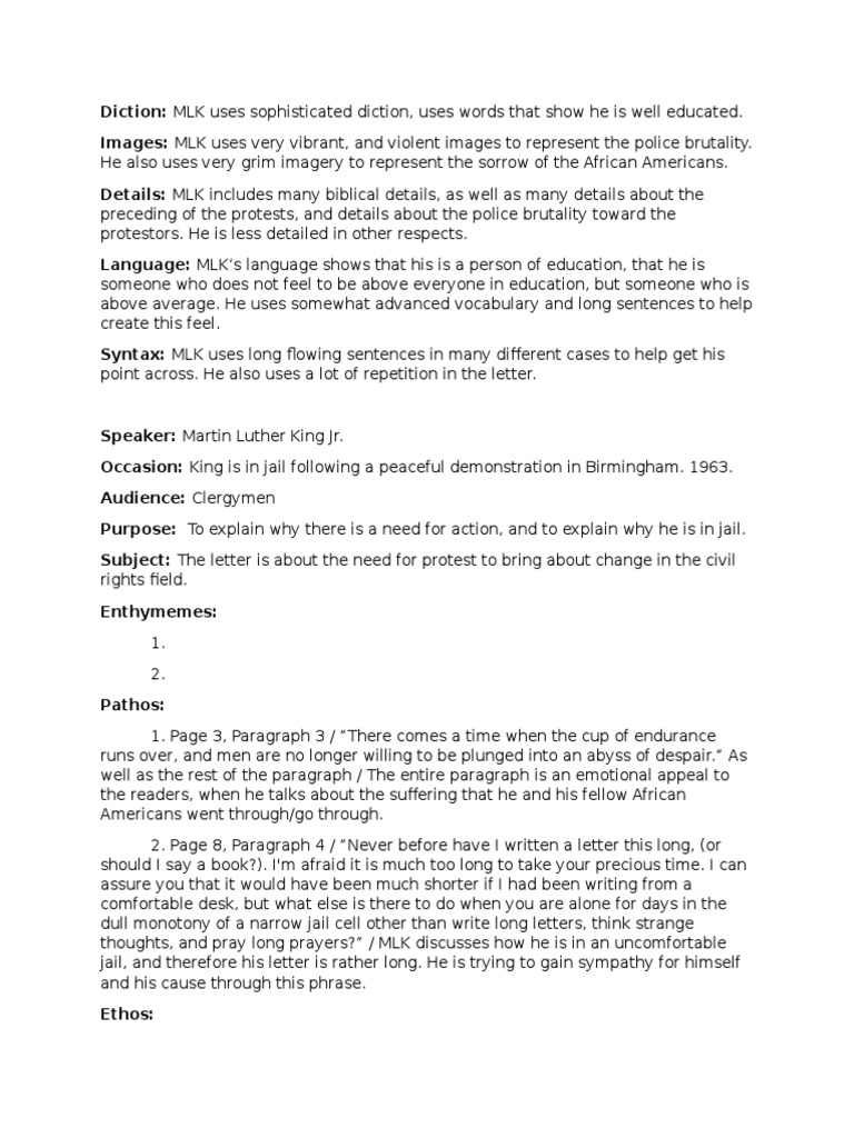 The letter from birmingham jail rhetorical analysis includes a broad context of direct references and allusions that can divide into several categories. But on April 16 1963 he was confined to the Birmingham jail imprisoned for participating in civil rights demonstrations. Letter from Birmingham Jail Primary Source Analysis Martin Luther King Jr.