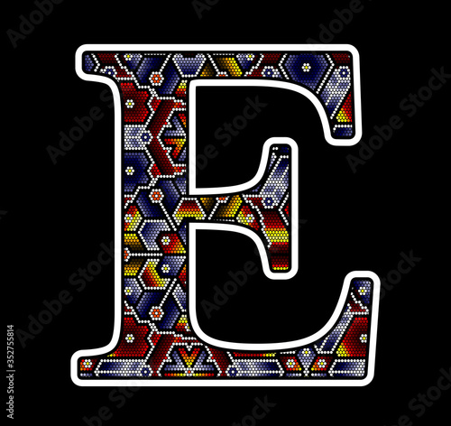 Initial Capital Letter E With Colorful Dots Abstract Design Inspired In Mexican Huichol Beaded Craft Art Style Isolated On Black Background Stock Vector Adobe Stock