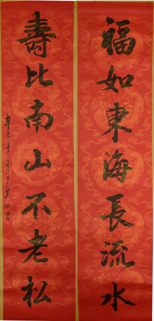 1 Pair Of Chinese Calligraphy On Red Paper Wu Pei Jan 17 2013 888 Auctions In Canada