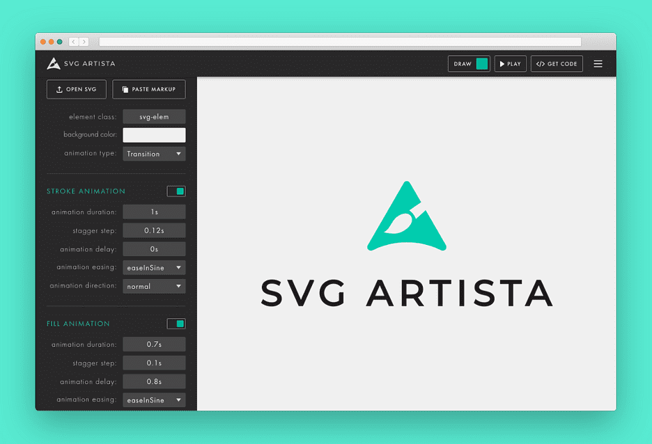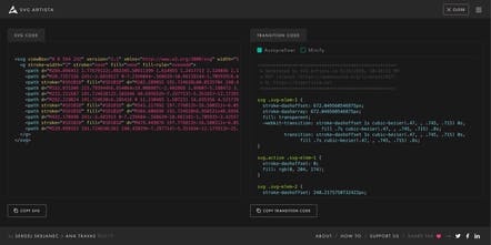SVG Artista is a tool that helps you animate stroke and fill properties in your SVG graphics with CSS code. Design tool for 3D web experiences. It should work fine with path line polyline rect circle ellipse and polygon elements.