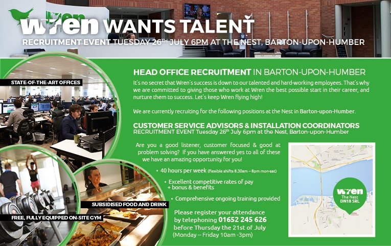Wren Kitchens On Twitter We Re Hiring Come Along To Our Recruitment Event On July 26 From 6pm At The Nest To Find Out More Jobs